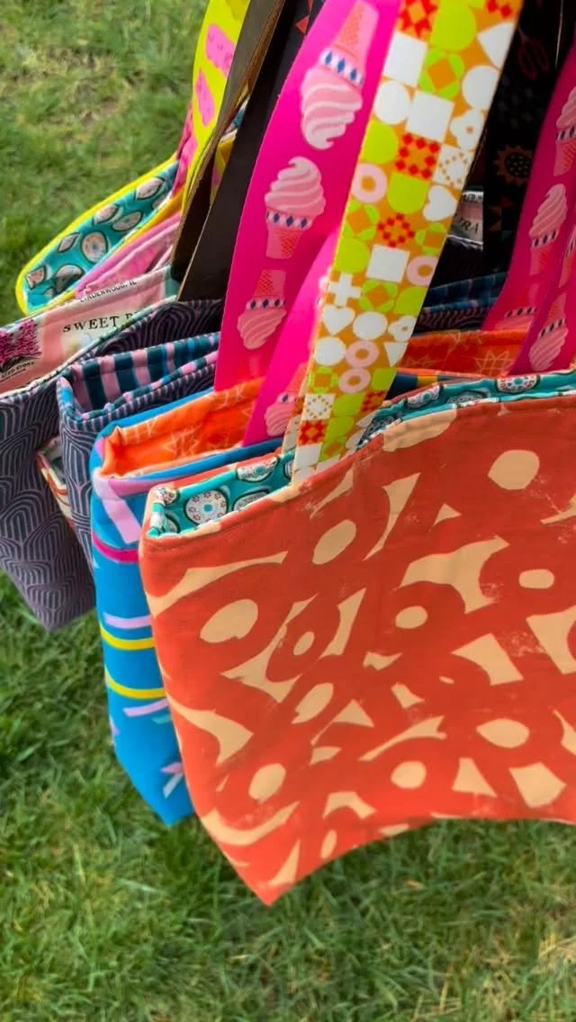 Ruby Star Society Clementine designed by Melody Miller used in my very first quilt pattern, Joyful Stripes and Ruby Star Society Sugar Cone designed by Kim Kight also used in a Joyful Stripes quilt.